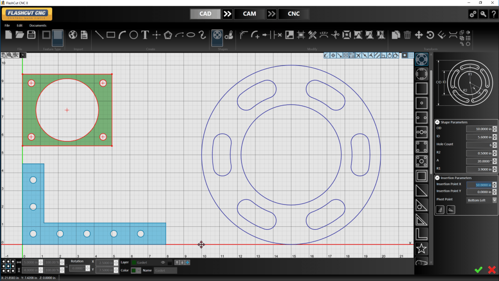 Our Shape Library will allow you to make typical everyday parts like gaskets, flanges, covers, etc. in an instant. Each shape can be tailored to your needs using our simple menus. Any part generated from the Shape Library can be further edited using our drawing tools.