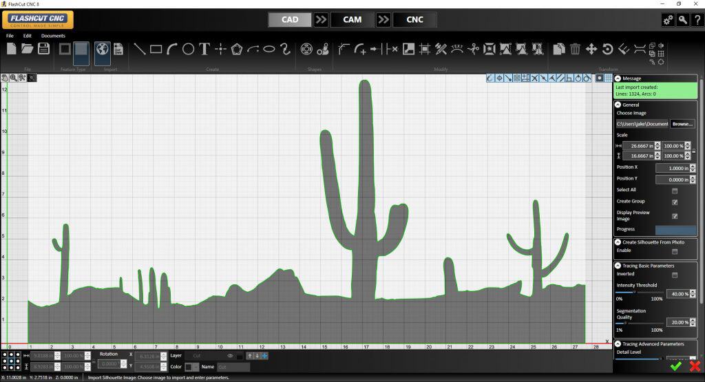 This tool imports a silhouette image and fits geometry to the outline to instantly create drawings.